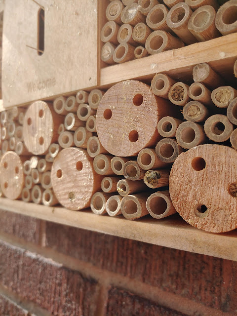 We also discovered some new residents on said porch when we were cleaning. We're now playing host to a hive of carpenter bees.